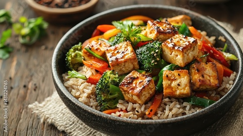 Teriyaki Tofu Bowl with Brown Rice and Vegetables