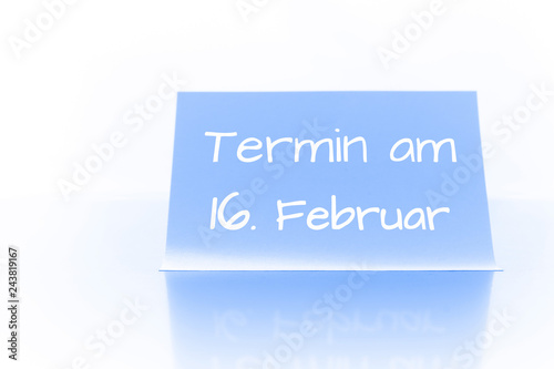 Termin am 16. Februar - blauer Zettel mit Notiz