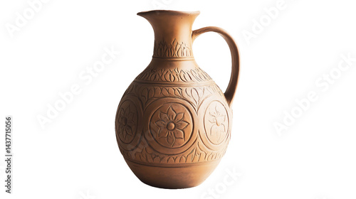 Terracotta Pot with Floral Design Handcrafted Pottery for Rustic Home Decor