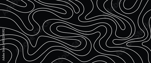 Terrain topographic map background wave lines seamless pattern vector liquid swirl in black and white colors