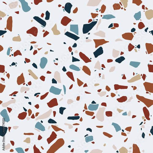 Terrazzo flooring, seamless pattern. Polished pebble stone tile. Bright and modern abstract background. Vector texture
