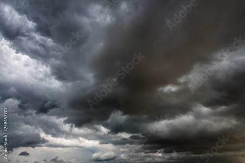 Terrible overcast sky. Gray rainy clouds. A storm warning.