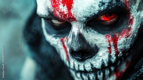Terrifying Skull Makeup Close-up of a Man with Ghastly Halloween Face Paint