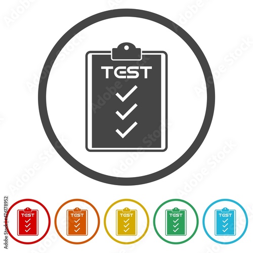 Test clipboard icon isolated on white background, color set