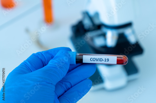 test tube containing blood sample infection from flu disease tested in medical science laboratory