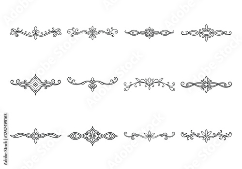 Tet of text delimiters and scroll elements, Graphic underline elements, Vintage divider, vector illustration border