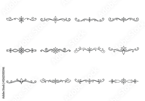 Tet of text delimiters and scroll elements, Graphic underline elements, Vintage divider, vector illustration border
