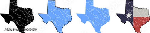 Texas State Outline Variations Black Blue Flag Lone Star State Map Graphic Design