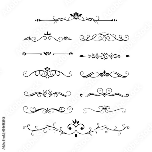 Text dividers doodle set. Wedding decorative elements with leaves, swirls, hearts. Divider ornament, borders, lines. Hand drawn vector illustration isolated on white background