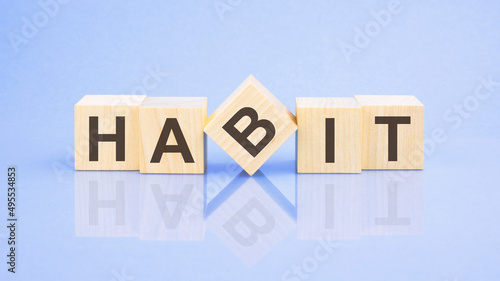 text Habit - letters by on woodens blocks on pale lilac background, in concept of business and corporation