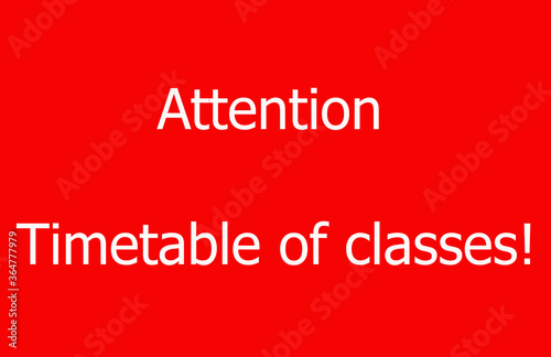 text on a red background. Attention. Timetable of classes!