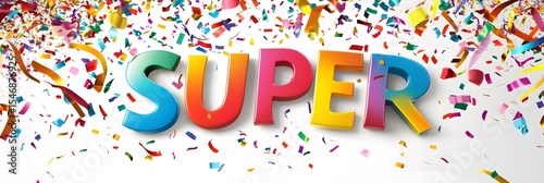 Text on the background. Popular 3d word SUPER. Image for designers. AI generated.