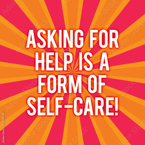 Text sign showing Asking For Help Is A Form Of Self Care. Conceptual photo Be open to ask for support in others Sunburst photo Two Tone Explosion Effect for Announcement Poster Ads