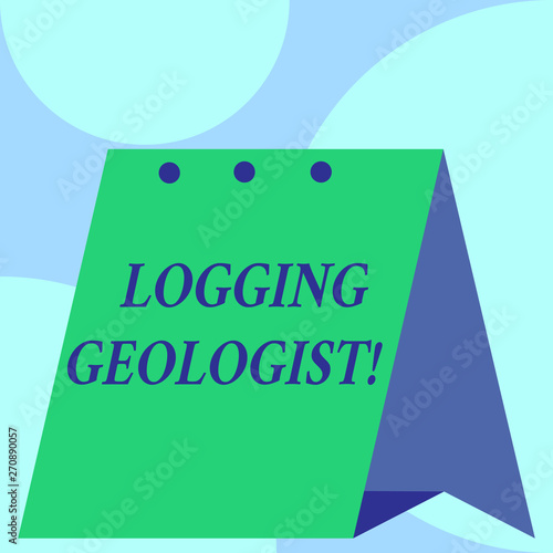 Text sign showing Logging Geologist. Business photo showcasing Layout and execution of definition diamond drill programs Open big standing calendar Desk monthly planner Geometrical background