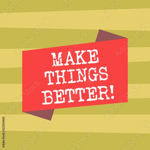 Text sign showing Make Things Better. Conceptual photo improve something or to make it more attractive valuable Blank Color Folded Banner Strip Flat Style photo for Announcement Poster