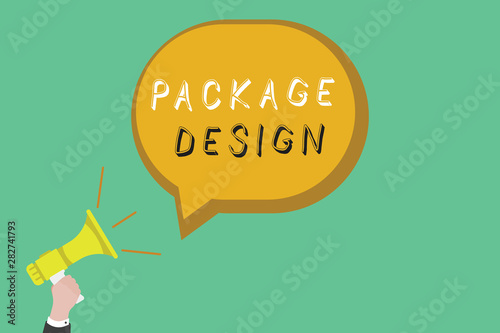 Text sign showing Package Design. Conceptual photo Strategy in creating unique product wrapping or container.