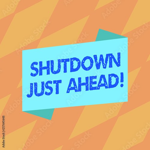 Text sign showing Shutdown Just Ahead. Business photo showcasing closing factory business either short time or forever Blank Color Folded Banner Strip Flat Style photo for Announcement Poster