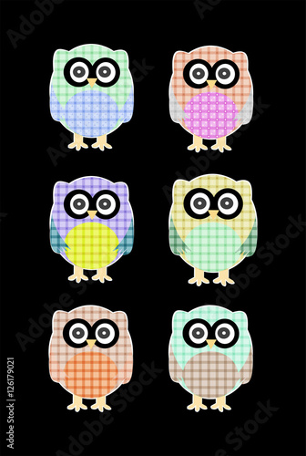 textile cartoon owls icon set