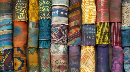 Textiles background: Handwoven or woven with unique patterns from Africa, Displaying Intricate Patterns.