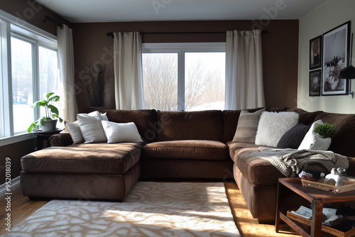 Textural Elegance: Chocolate Suede Sectional in a Warm and Welcoming Room