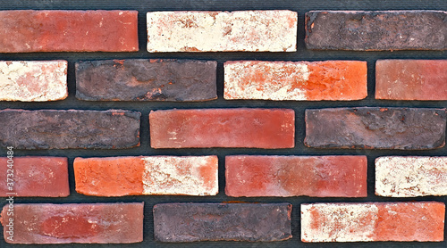 Texture of brick wall. new brickwork. Samples of wall or fence are presented at exhibitions. Brown and orange brick close up.