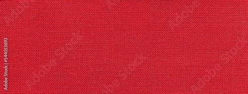 Texture of bright red color background from textile material with wicker pattern. Vintage ruby fabric