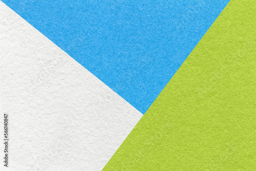 Texture of craft white, blue and green shade color paper background, macro. Vintage abstract cerulean cardboard