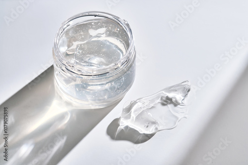 Texture of the gel in the jar. Hair gel or hyaluronic gel for the face.