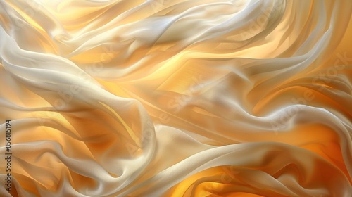 Texture of white silk with folds in the form of waves, illuminated by yellow light