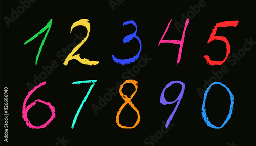 Texture vector numbers, kids crayon drawing, set of childish illustrations