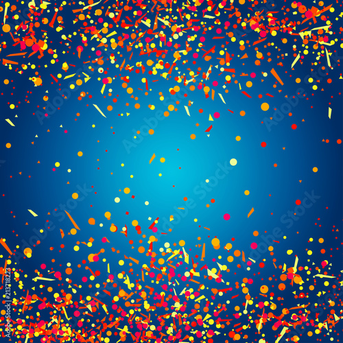 Texture with colored confetti on dark background. Pattern for design. Print for polygraphy, posters, textiles. Greeting cards. Explosion. Firework