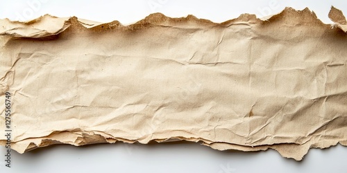 Textured aged note paper with crumpled edges centered on a clean white background, showcasing natural beige tones and organic lines.