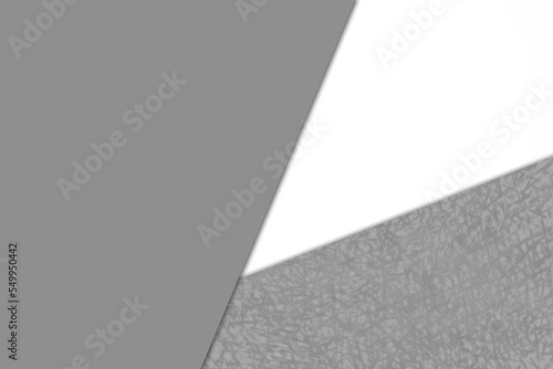 Textured and plain coloured papers forming three triangles for creative cover designing
