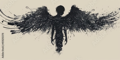 Textured Angelic Figure in Black and White