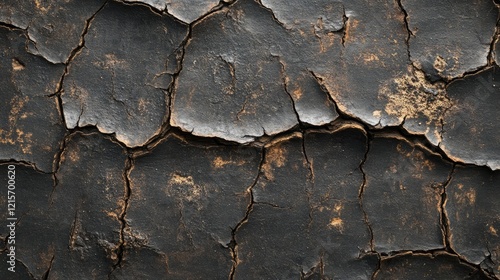 Textured black cracked surface with dark paint peeling revealing rust and weathered layers Copy Space