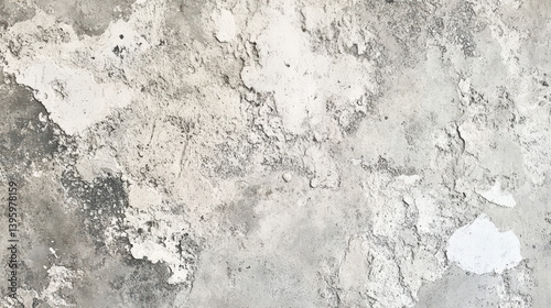 Textured Concrete Wall: A close-up shot reveals the intricate texture of a weathered concrete wall, showcasing a mix of gray and white hues, cracks, and patches of worn paint.