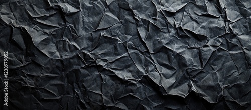 Textured crumpled black paper background detailed surface with shadows suitable for various graphic design applications Copy Space