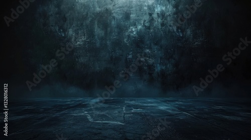 Textured Dark Blue Wall with Reflective Floor and Fog