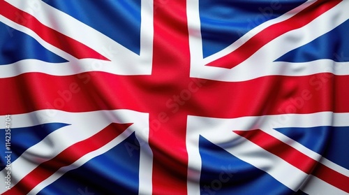Textured Fabric of the United Kingdom Flag in Vibrant Red, White, and Blue