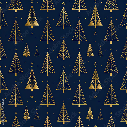 Textured Gold Geometric Christmas Tree Pattern on Navy Blue suitable for modern banner, website, or greeting card designs