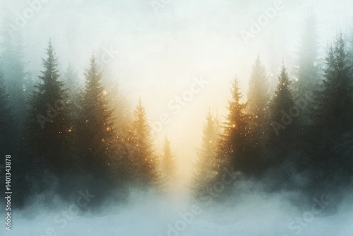 Textured grain forest scene with festive holiday lights design for seasonal decor