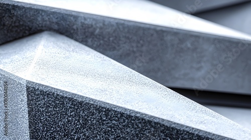 Textured gray geometric shapes with sharp angles and smooth surfaces, creating a modern and abstract architectural design in a monochromatic color scheme.