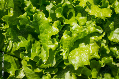 Textured organic background with space to copy - bright green lettuce leaves close-up