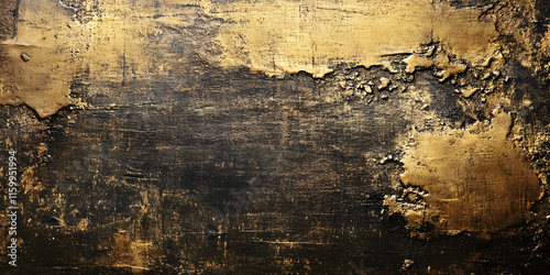 Textured Rustic Gold and Black Abstract Surface with Weathered Patina Effect : Generative AI