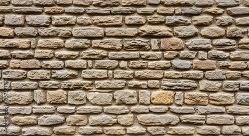 Textured stone wall with varied brick sizes and natural patterns