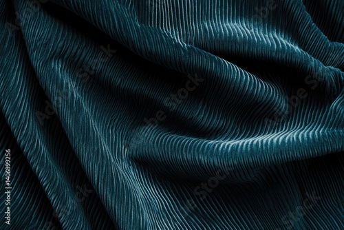 Textured teal fabric, softly draped, showcasing its ribbed pattern and luxurious feel.