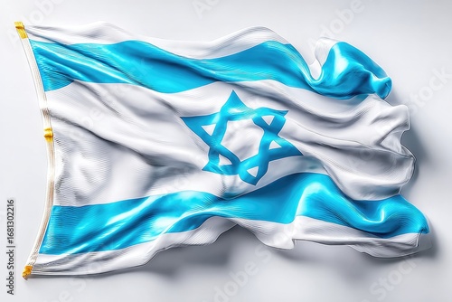 Textured waving flag of Israel with blue and white colors, symbolizing national identity and rich cultural heritage, fluttering in the breeze
