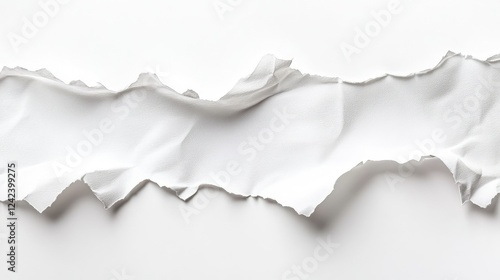 Textured White Torn Paper Strip on Clean Background for Creative Design, Backgrounds, and Stylish Collages in Modern Graphic Art Projects