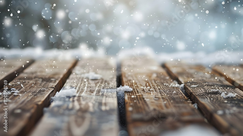 textured wooden brown surface on snowy background