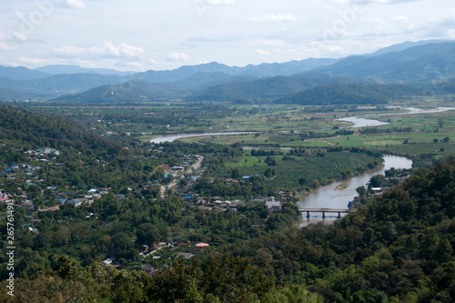 Tha Ton Thailand, view from Wat Tha Ton over the village of Tha Ton and the Kok River